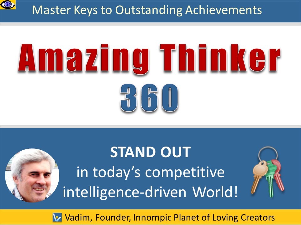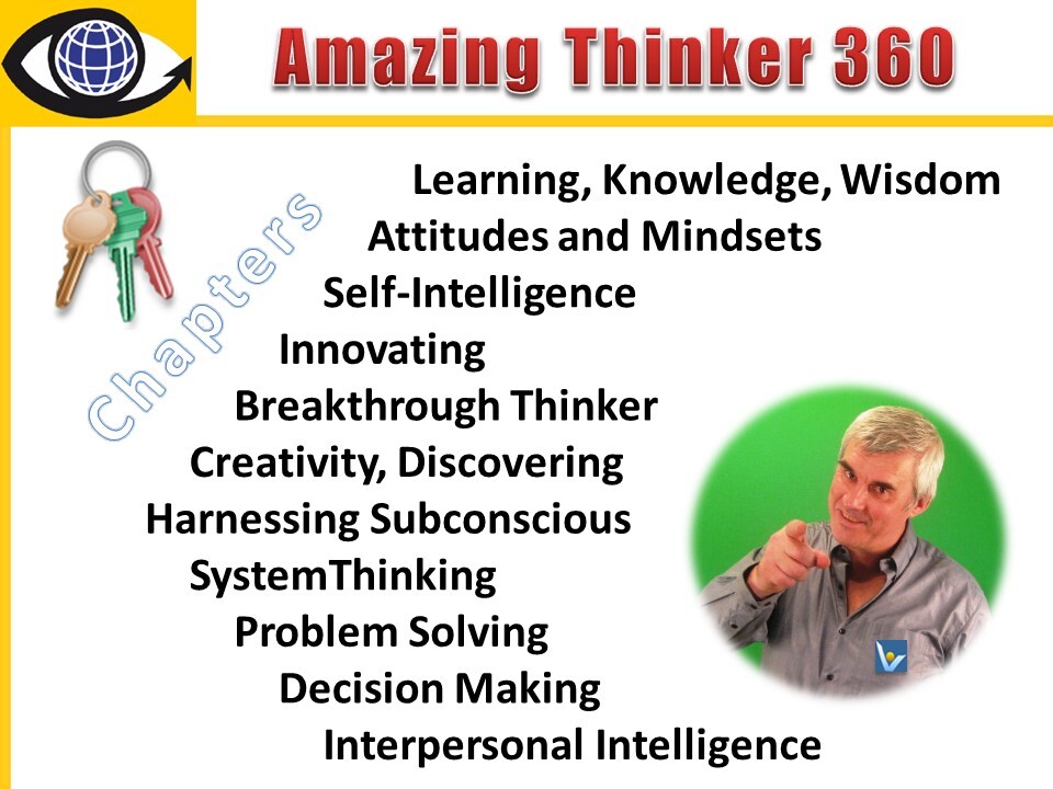 Master keys to => Learning, Knowledge, Wisdom => Effective Attitudes and Mindsets => Self-Intelligence => Innovating => Breakthrough Thinking => Inspiration, Creativity, Inventing, Discovering => Harnessing Subconscious Mind => SystemThinking => Problem Solving => Strategic Thinking => Decision Making => Interpersonal Intelligence